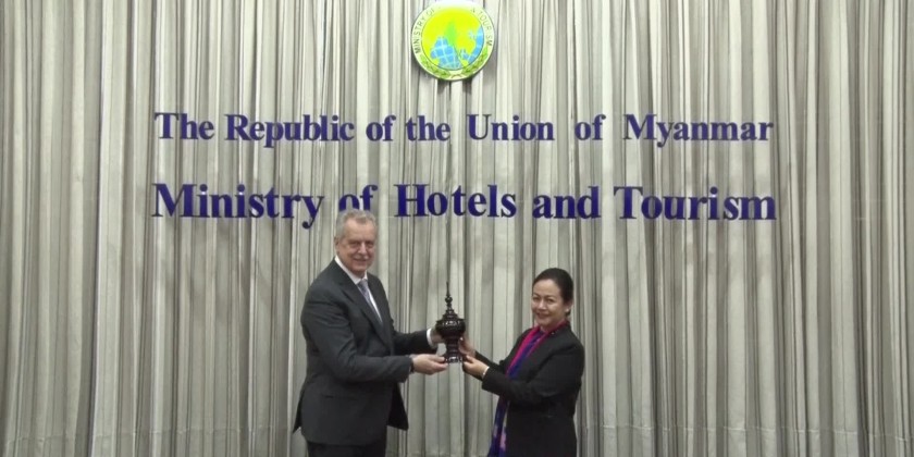 Union Minister for Hotels and Tourism Dr Thet Thet Khaing received a Russian Delegation led by member of the Government of St. Petersburg and Chairman of the External Relations Committee Mr. Grigoriev Evgeny Dmitrievichin Nay Pyi Taw on Friday.