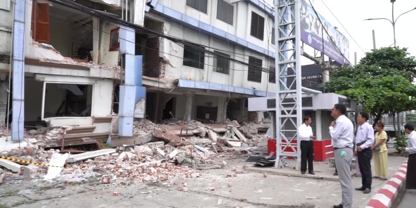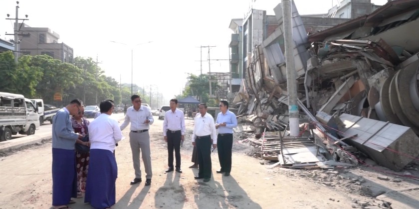 Union Minister for Hotels and Tourism, U Kyaw Soe Win, and the Minister for Economic Affairs of the Mandalay Regional Government, U Thein Htay, on 10th April, visited hotels in Mandalay that were damaged and destroyed by the recent earthquake.