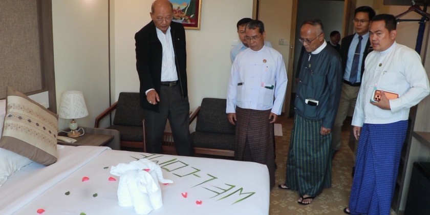 Union Minister for Sports and Youth Affairs and Hotels and Tourism Jeng Phang Naw Taung visited hotels in Mawlamyine of Mon State on Friday, to inspect their operations. Accompanied by Mon State government officials and members of the Mon State Hotel Entrepreneurs Association, the Union Minister inspected Royal Mawlamyine Hotel and Ngwe Moe Hotel.