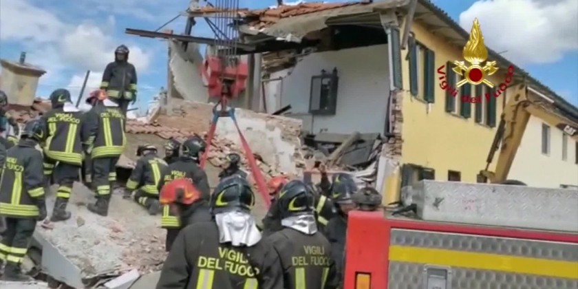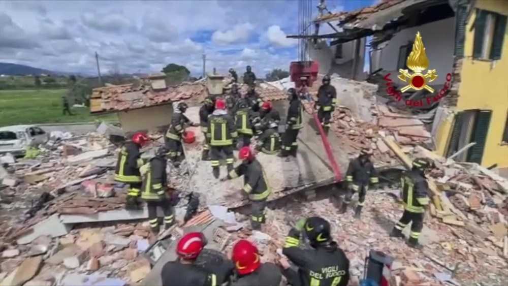 A house collapsed on Saturday morning after a domestic explosion in Montecarlo, in Italy's Tuscany region. Italian firefighters were working on the site of the collapse, trying to save two people still trapped under the rubble.