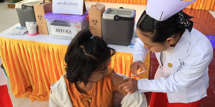 The Kayah State Public Health Department is currently conducting HPV vaccination for girls aged 9 to under 12 years old as a community-based cervical cancer prevention program. In the morning on December 22, Chief Minister U Zaw Myo Tin, accompanied by responsible officials, visited the vaccination site at Loikaw Township Hall to observe and encourage the vaccination activities.