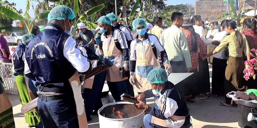 Initially, the participating teams took their designated positions, after which the judging panel explained the competition rules and regulations in detail. The Chief Minister and officials inspected the preparation and arrangement of the equipment to be used by the competing teams in the traditional Htamane-Making competition. They also encouraged the participants with motivational words.