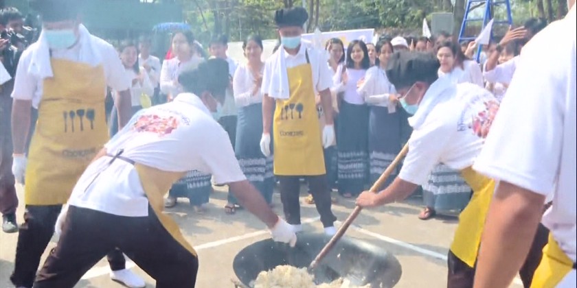The Ministry of Information hosted a Myanmar traditional Htamane-making competition at its parking lot in Nay Pyi Taw on Tuesday.
