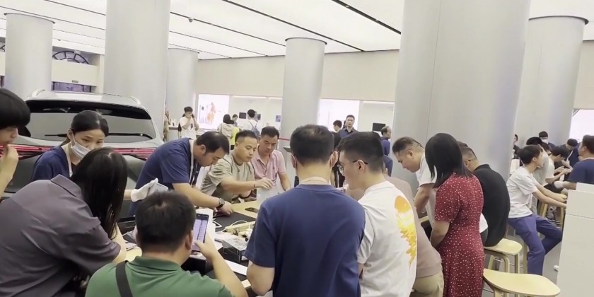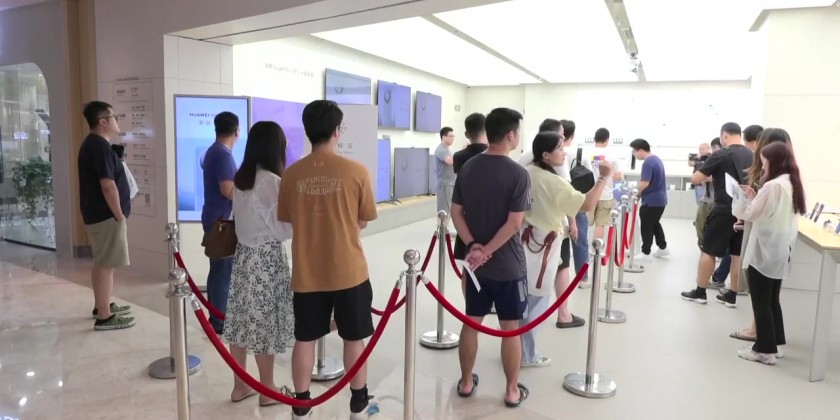 The offline pickup for the world's first satellite phone released by Chinese tech giant Huawei started on Sunday, attracting a number of customers across the country to be among the first experiencing the cutting-edge technologies.