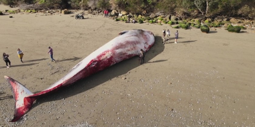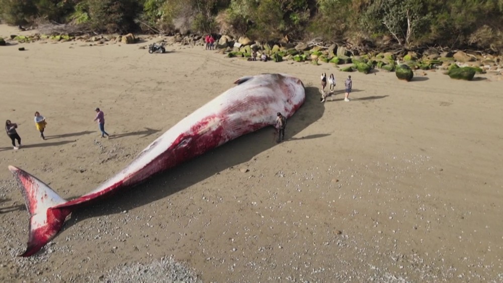 Huge blue whale washes ashore in southern Chile