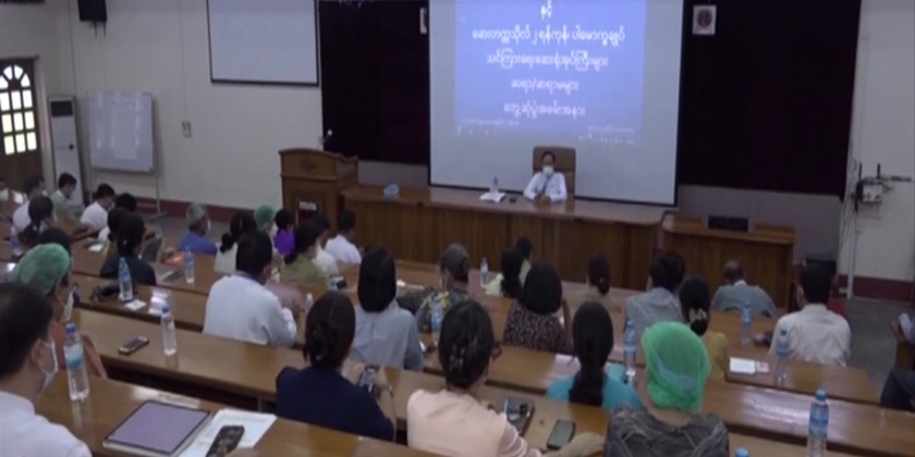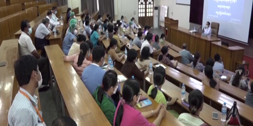 Union Minister for Health Dr Thet Khaing Win met rectors, deans, medical superintendents, teachers and officials of the University of Medicine (2), the University of Dental Medicine (Yangon), the University of Medical Technology (Yangon) and the University of Pharmacy (Yangon) on 28 and 29 April respectively.