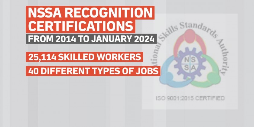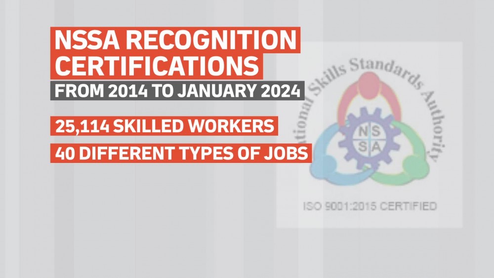 In 2023-2024 fiscal year, the NSSA aims to process 3,500 workers for skill development across 29 job types. During this period, over 2,700 individuals sat for exams, with more than 2,500 successfully passing the rigorous assessment process.