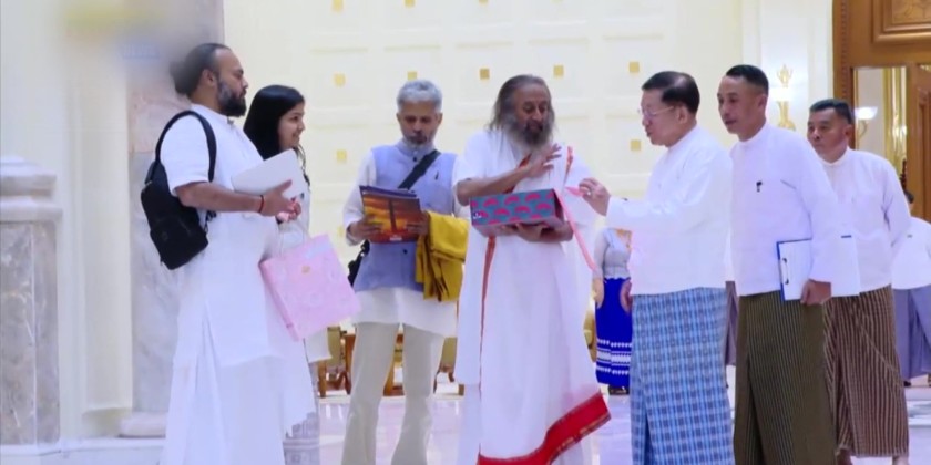 During the meeting, the Prime Minister expressed his appreciations to the Indian Gurudev for his visit to Myanmar. For his side, the Gurudev assured to provide requisite assistance for the peace and prosperity of Myanmar.