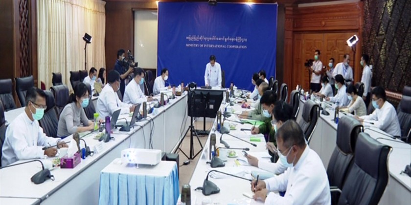 The Meeting was attended by the Chair of the Task Force, Union Minister for International Cooperation U Ko Ko Hlaing, Vice Chair (1) of the Task Force, Union Minister for Health Dr. Thet Khaing Win, and members of the Task Force.