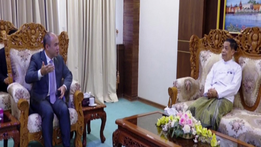 Union Minister for Ministry of International Cooperation and Chairman of the Task Force to facilitate the provision of Humanitarian Assistance to Myanmar through the AHA Centre U Ko Ko Hlaing received the Cambodia Delegation led by Secretary of State for the Ministry of Foreign Affairs and International Cooperation and Head of the office of the Special Envoy of the ASEAN Chair Dr. KUNG Phoak on 21 September at the Ministry of Foreign Affairs in Nay Pyi Taw.