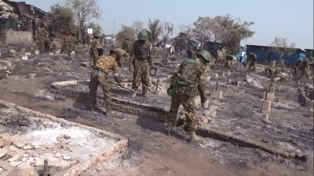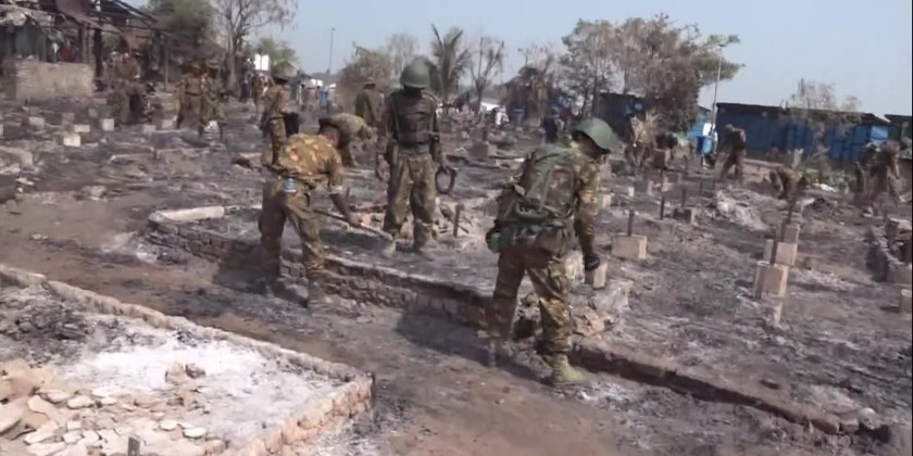 Tatmadawmen from Western Command and local battalion, members of Myanmar Police Force and Fire Brigade members extinguished the fire.