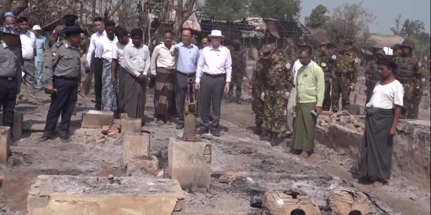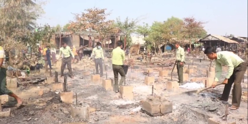 On 2nd March, Rakhine State Chief Minister U Htein Lin and officials proceeded to the scene and inspected the debris clearing process, construction of temporary shelters, drinking water distribution, healthcare service provision as well as preparations to provide necessary aids boxes donated by the Ministry of Social Welfare, Relief and Resettlement. The Chief Minister also met with the community elders, coordinated necessities and provided foodstuff.