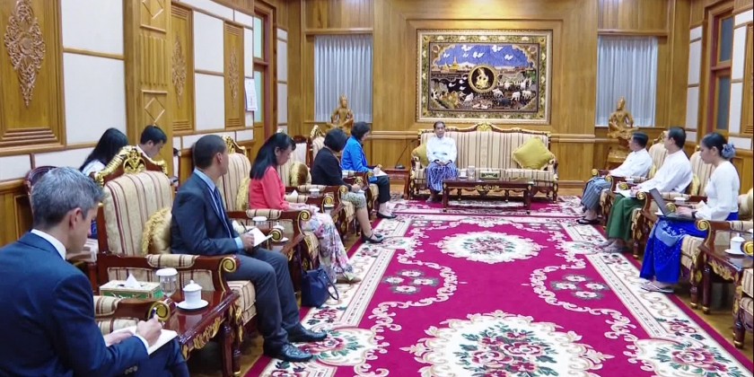 Union Minister at the Chairman of the State Administration Council Office (2) U Ko Ko Hlaing received the delegation led by Director of UNHCR Regional Bureau for Asia and the Pacific Ms. Hai Kyung Jun at the Ministry in Nay Pyi Taw on Wednesday.