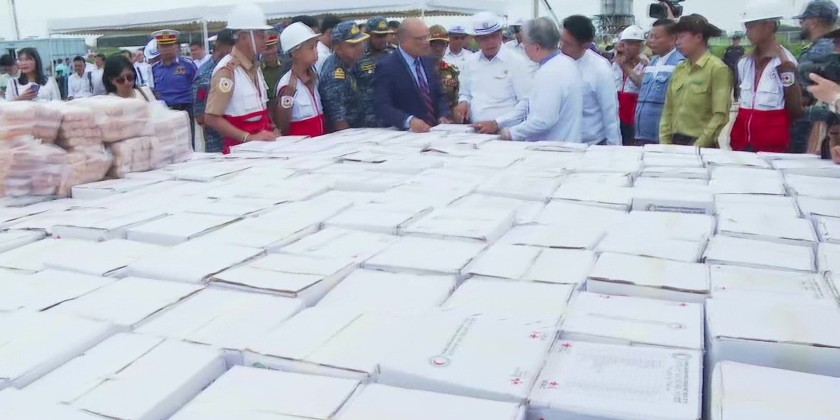 A ceremony to handover these relief items was held on April 12th where Bangladeshi Ambassador to Myanmar Dr. Md. Monwar Hossain provided an overview of the relief initiative. This was followed by the official transfer of aid supplies to Yangon Region Government U Soe Thein.