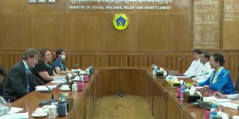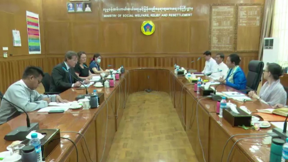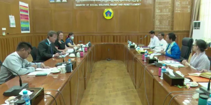 Union Minister for Social Welfare, Relief and Resettlement Dr. Thet Thet Khine received a delegation led by Deputy Humanitarian Coordinator, Head of UNOCHA (Myanmar) Office Mr. David Carden on Thursday.