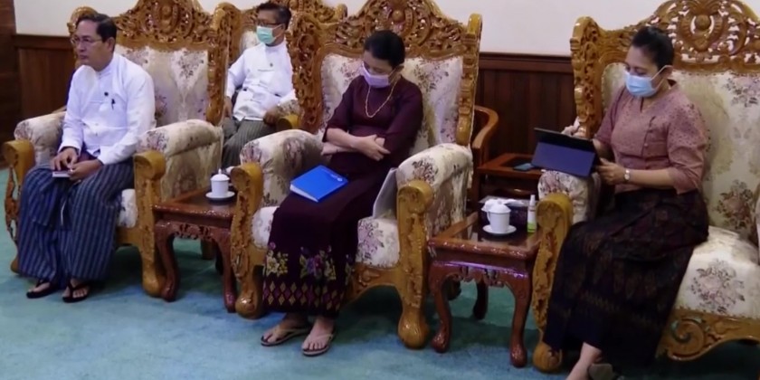 Union Minister for International Cooperation Chairman of the Task Force to Facilitate provision of Humanitarian Assistance to Myanmar through the AHA centre U Ko Ko Hlaing received the Cambodia Delegation led by Dr. Kung Phoak, Secretary of State for the Ministry of Foreign Affairs and International Cooperation and Head of the office of the Special Envoy of the ASEAN Chair at the Ministry of Foreign Affairs in Nay Pyi Taw on 9th June.