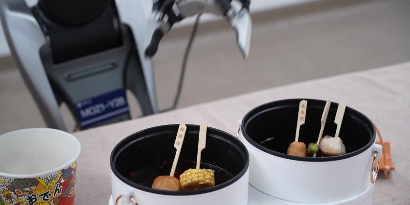 In a scenario of preparation for hot pot ingredients, for example, robots can be trained to exactly put food materials into bowls or other containers as a human being by following the moves of the staff member in a set of wearable devices.