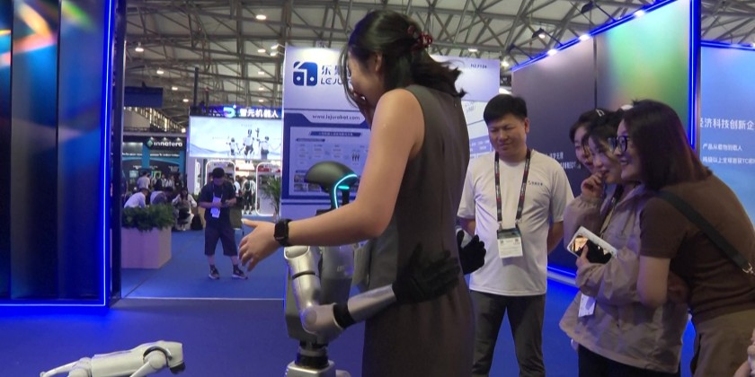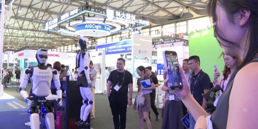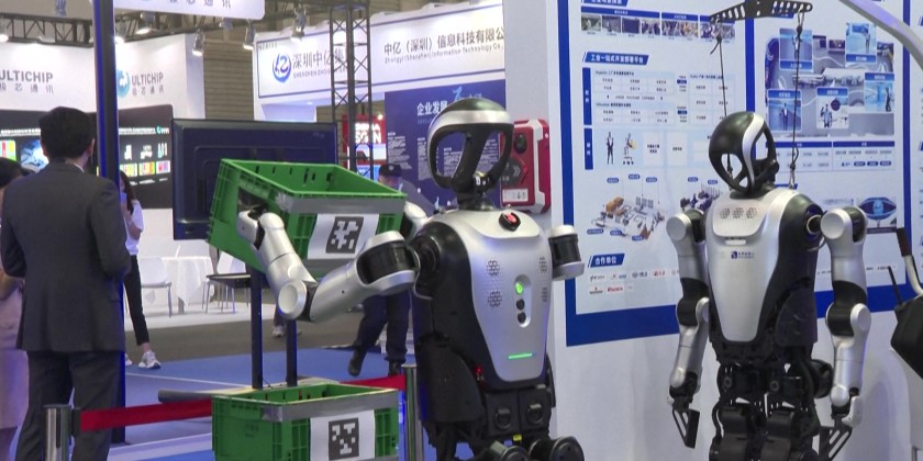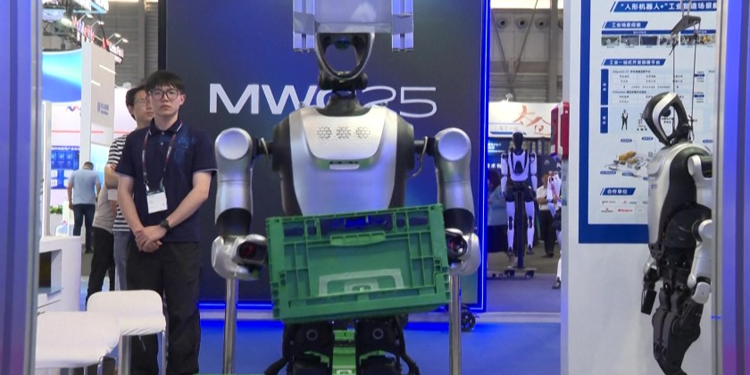 Humanoid robots are on display at this year's Mobile World Congress, in Shanghai, as interest and investment in artificial intelligence persists. Along with the robots, major Chinese technology companies such as ZTE and Huawei were showing off their wares on the first day of the exhibition. This year's Mobile World Congress runs from June 18 to 20.