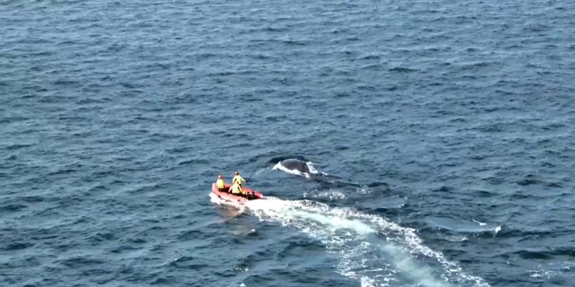 By dawn the next day, rescuers resumed their efforts, using specialized equipment to secure the whale in place while they carefully cut away the debris. The whale was finally freed just before midday and swam off into the open ocean, marking the end of its 22-hour ordeal.
