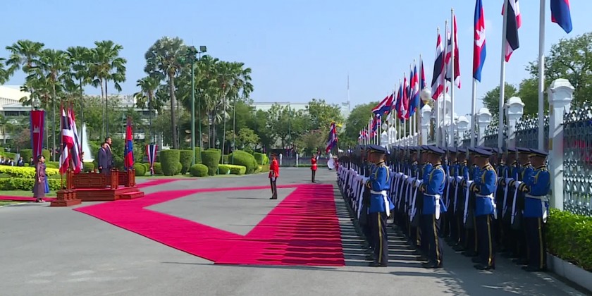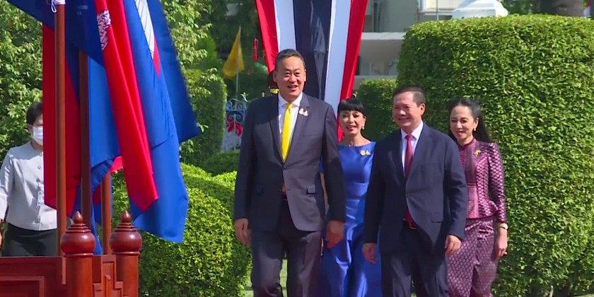 Thai’s Prime Minister SretthaThavisin welcomed his Cambodian counterpart Hun Manet at Government House with a guard of honor on Wednesday. They held talks on economic border development, boosting trade and investment, promoting transport connectivity, and fostering tourism, according to official.During the visit, the two Prime Ministers will witness the signing of various cooperation agreements between Thai and Cambodian government agencies.