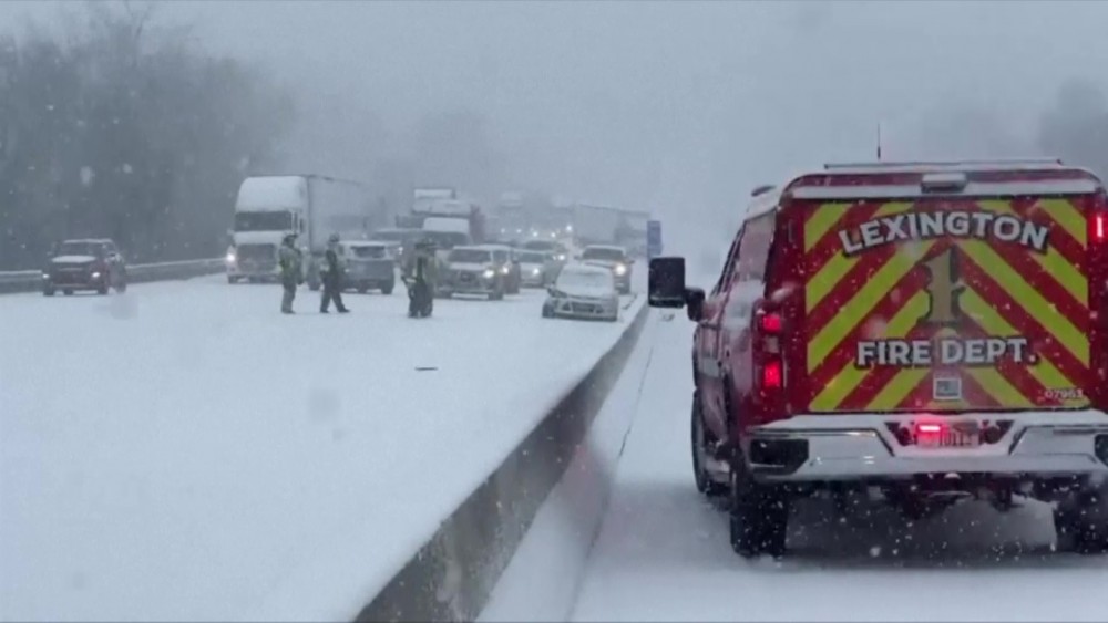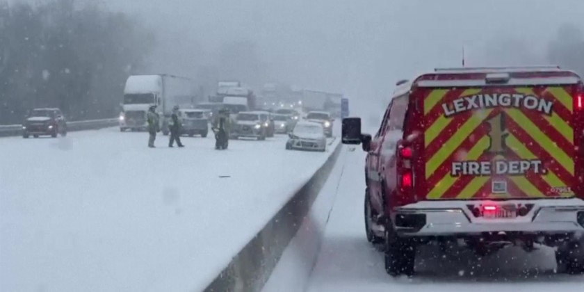 A winter storm blanketed parts of the South with snow, freezing rain and sleet Thursday, tying up roads in Tennessee and Kentucky. Kentucky Gov. Andy Beshear warned that the snow hitting his state was “both real and dangerous,” with hundreds of car crashes across the state.