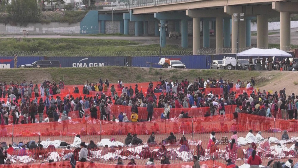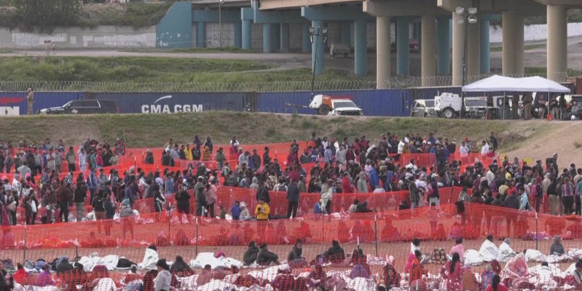 Hundreds of migrants wait to be processed by US authorities in Eagle Pass of Texas, after crossing the US-Mexico border. The state's Republican governor signed a bill on Monday that would allow state police to arrest and deport migrants who cross illegally into the United States from Mexico. The move by Governor Abbott sets up a potential legal clash with the federal government, which generally sets and enforces immigration laws.