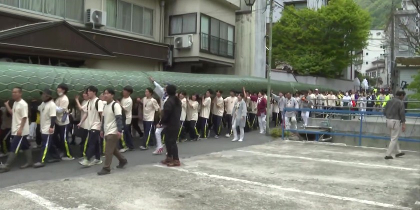 The Daija Festival got underway at the Oigami Onsen hot spring resort in the city of Numata on Friday. Daija means giant snake in Japanese. The annual event usually features a 30-meter-long portable shrine that is carried through the streets. But this year, the shrine measures more than 108 meters in celebration of the Year of the Snake.