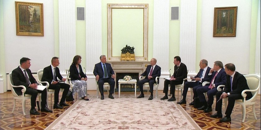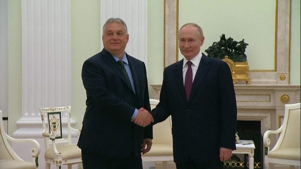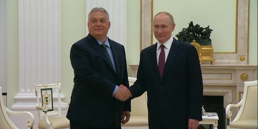 Hungarian Prime Minister Viktor Orban met with Russian President Vladimir Putin in Moscow The meeting on Friday came just a few days after Orban visited Kyiv. Hungary holds the rotating presidency of the European Union .The two met to discuss a variety of global and Orban said the two sides are far apart but that he will do what he can to bring about a peaceful resolution.