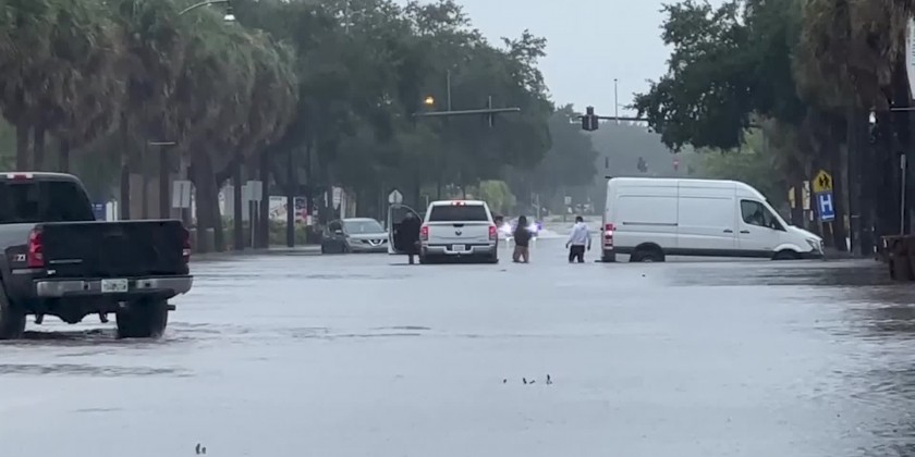 While the area escaped much of the destruction of the Category 4 hurricane that slammed into southwest Florida--as it weakened to a tropical storm on its way inland--some areas received over a foot of rain. Rescues of stranded residents took place across the Orlando area, including in Kissimmee, where several nursing homes and a hospital were surrounded by water. In many areas, cars were submerged in parking lots and water seeped into businesses.