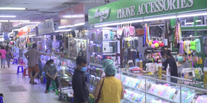 Yuzana Plaza is one of the main Clothing and Commodity retails and wholesale markets; it has 5 floors with over 2,000 shops. Some shops are preparing for reopening and some are still closed.