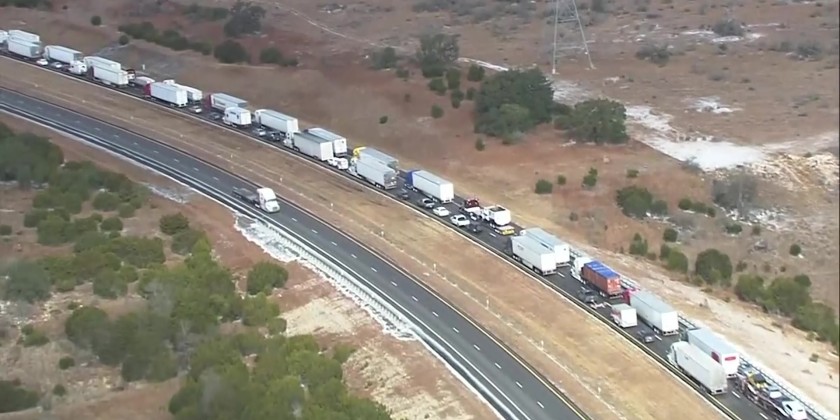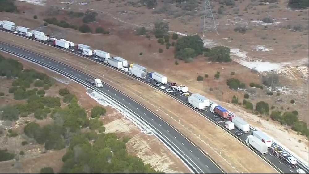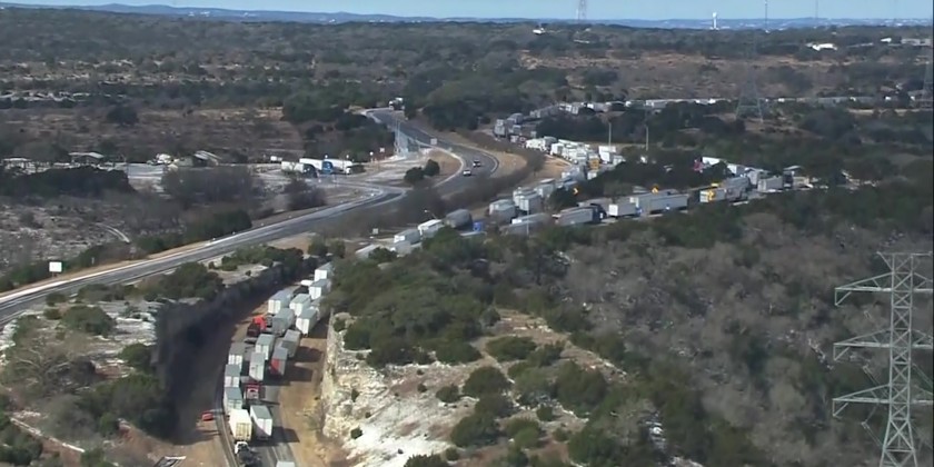 Police in Texas say a crash on an icy road caused massive traffic jam on Interstate 10 Friday. Aerial video from KSAT in San Antonio showed a miles-long line of cars and trucks in Kerrville.