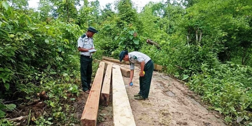 The Bago Region Forest Department seized illegal timber in the Kyaukmasin forest reserve at Yedashe Township, Toungoo District.