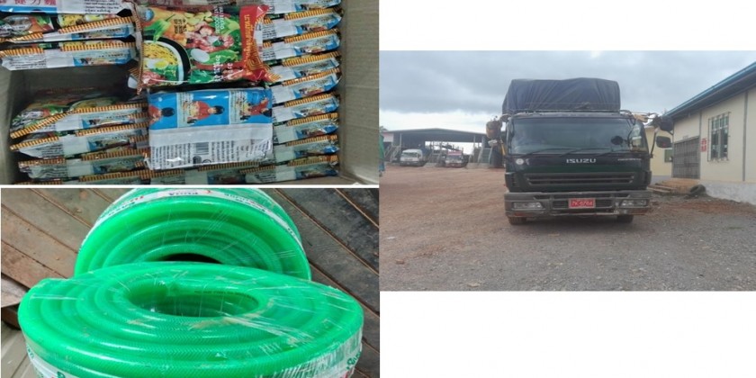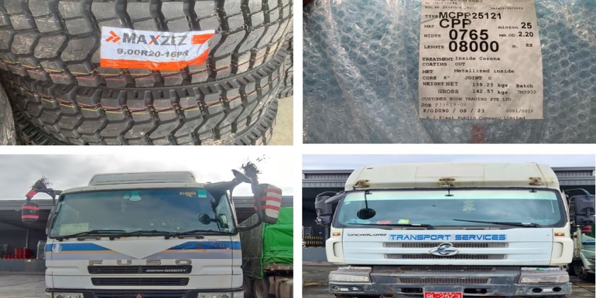 On the 15th, 19th and 20th of September, illegal goods including car tyres, transparent sheet, foodstuffs and construction materials worth over 631 million Kyats were confiscated at the Ywarthargyi dry port and in Shwepyitha Township, in Myeik Township and at the Kawkareik (Tadakyoe) combined checkpoint.