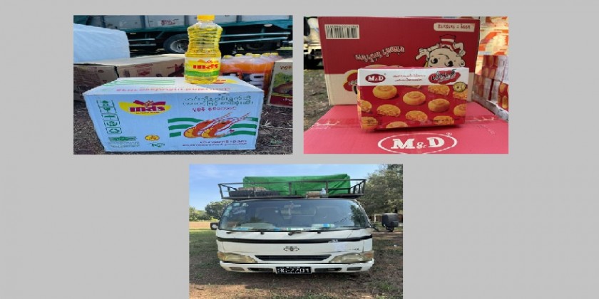 On 28th and 29th November, illegal goods including 130 tons of crystals, used tyres, canned fish, edible oil, Vaseline Lotion, Touch Glass, garlic and 2,000 kg of Label Stickers with an estimated value of more than 644 million kyats were confiscated in MoeKaung Township, at Kyarkalay-Zarthapyin-Mawlamyaing road section, at the Nyaungkhashay x-ray station, in Yatsauk Township and at the Mayanchaung permanent checkpoint. Investigation is underway and legal actions have been taken in line with the laws and procedures.