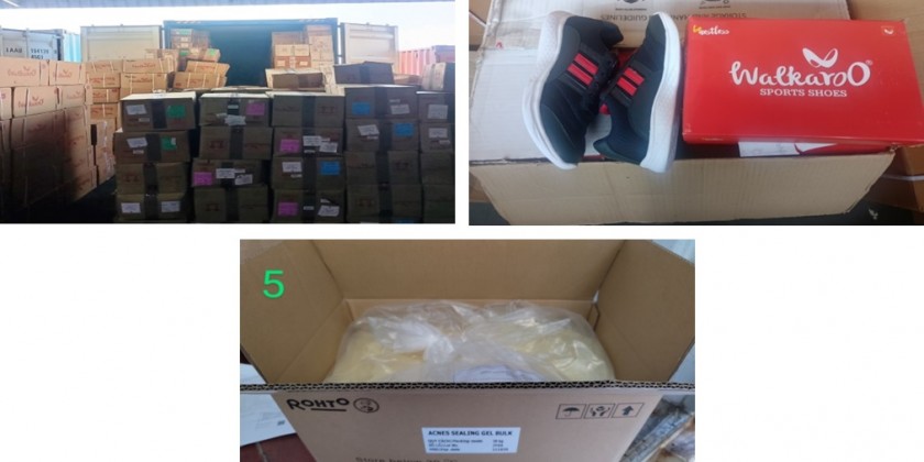 On 18 January, the on-duty teams under the supervision of the Customs Department confiscated 1,884 pairs of sport shoes that were not declared in the Import Declaration (ID) and three goods including 516.96 kilogrammes of Rothoances sealing gel that were different in the FDA approval from two containers at the Asia World Port Terminal container checkpoint.