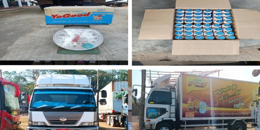 A Bago Customs team captured 680 cartons of Yogurt without official documents from a Nissan box truck heading from Mawlamyine to Yangon.