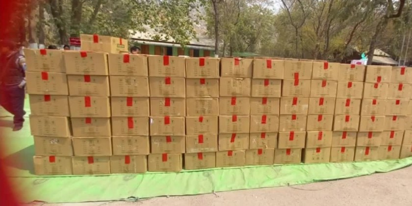 On the 9th, 10th, 12th, 13th and 14th of March, illegal goods including tiles, welding rods, ceiling bars, vacuum steel flask, iron pipes, red gram, colour crepe paper, palm oil, foodstuffs, consumer goods, cosmetics and teak worth over 857 million Kyats were confiscated at the Asia World Port Terminal container checkpoint, at the Mayanchaung permanent checkpoint, energy drinks and at the 16th-Mile Kyaukchaw checkpoint as well as in Muse Township and at the Thanlwin Bridge (Mawlamyine) checkpoint and in Sagaing, Pyu and Letpadan townships.