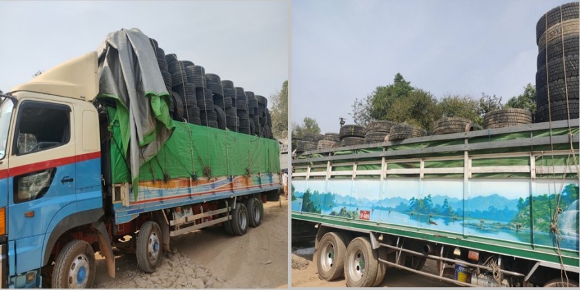 On the 31st of January and on the 1st and 3rd of February, illegal goods including engine oil, walkies-talkies, PVC Skirting, tyres, vehicle and cooking oil worth over  239 million Kyats were confiscated at the Mayanchaung Permanent Checkpoint and at the Yangon International Airpot as well as on the Yangon-Hpa-An-Myawaddy Road and in Bago Township, in North Okkalapa Township and at the Thanlwin Bridge Combined Checkpoint.