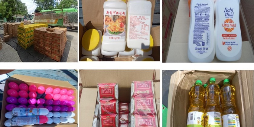 On the 16th, 17th, 18th and 19th of August, illegal consumer goods, industrial materials, sport shoes, foodstuffs, motorbike spare parts, baby accessories, cosmetic products, lead powder, toilet accessories and ironwood were seized at the container terminal of the Myanmar International Port (Thilawa) and at the container terminal of the Myanmar Industrial Port as well as on the Mandalay-Pyin Oo Lwin Road, at the Yepu Permanent Checkpoint, at Kawkareik (Tadakyoe) Combined Checkpoint and in Yedashe Township of Toungoo District.