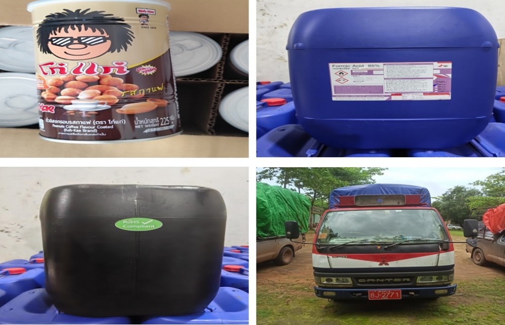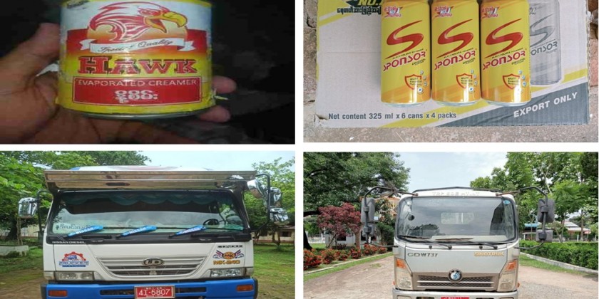 On 17th June, the combined teams nabbed two trucks heading to Kyaikmaraw from Phayathonzu, carrying five kinds of goods including 576 bags of Koh Kae egg peanut, in Kyaikmaraw Township, a light truck carrying 9,600 bottles of Sponsor soft drink from Thailand on the detour of Kengtung township, 24,750 kilograms of plastic resin at Myanmar Industrial Port and 1,315 jerrycans of palm oil from Malaysia (each containing 18 liters) and four kinds of goods including 2332.8 square meters of porcelain tiles from China from six containers at the Asia World Port Terminal container checkpoint.