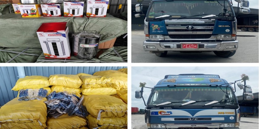 During inspections on 19 June, the on-duty teams managed by the Customs Department nabbed four vehicles carrying 1,360 bags of Muyaw paddy (50 kilogrammes each) from China at the Mayanchaung permanent checkpoint, ten kinds of goods including 28 boxes of Printing machine parts from China from a container at the Myanmar Industrial Port, 49,729 kilogrammes of PVC coated copper wire from India from three containers at the Asia World Port Terminal container checkpoint and 20 kinds of goods including 24 sets of Mikro machine from Malaysia from luggage at the Yangon International Airport, two trucks heading to Yangon from Mandalay, carrying two kinds of goods including 330 kilogrammes of steel lunch box from China at the Ywathagyi Dry Port and an unregistered Toyota Mark II in South Okkalapa Township.