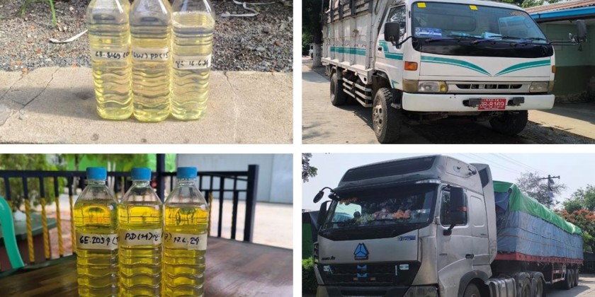 On 18 June, a Nissan diesel truck travelling from Myawady to Mawlamyine, carrying two kinds of goods including 1,700 jerrycans of Star Oil brand vegetable oil, near Kyungon village in Kyaikmaraw Township, a ToyoAce light truck carrying 690 gallons of illegal premium diesel at Yadanabon bridge (Mandalay) combined checkpoint and a Howo tractor head with a trailer carrying 644 gallons of illegal premium diesel at the Shwegyin checkpoint were impounded.