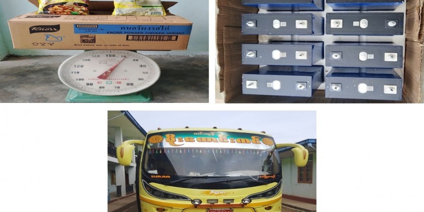 During inspections on 18th and 19th June, a Scania bus heading to Yangon from Kawthoung, carrying four kinds of goods including 432 bags of MSG from Thailand at the Nyaungkhashay x-ray station, illegal teak weighing 3.038 tonnes, illegal hardwoods weighing 1.182 tonnes and other illegal timbers weighing 0.63 tonne in Toungoo and Pyay districts were confiscated.
