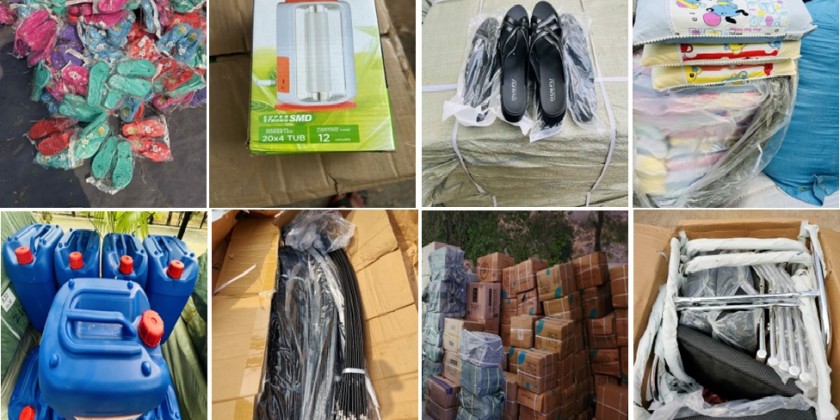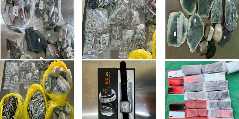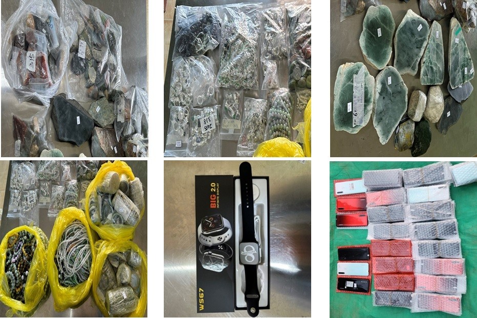 On the 26th, 27th and 28th of February, illegal goods including used mobile phones, phone accessories, beads, construction materials, toilet accessories, walkie-talkie, travelling suit cases, PVC flooring, rice cookers, electrical products, sports equipment, foodstuffs, bicycle spareparts and stand fans worth over 725 million Kyats were confiscated at the Sinphyu Checkpoint, at the Yangon International Airport and ports, at the Mayanchaung Permanent Checkpoint, at the 16-mile Kyaukchaw Checkpoint and at the Kawkareik (Tadakyoe) Combined Checkpoint.