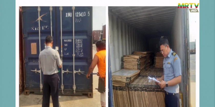 On April 29 and 30, undeclared marble slabs, spray pipe, generators, electric motor, lawn mower spare parts and illegal timbers were seized at the Myanmar Industrial Port Container Checkpoint in Yangon Region, Sagaing Township of Sagaing Region and Taungoo and Pyay districts of Bago Region.