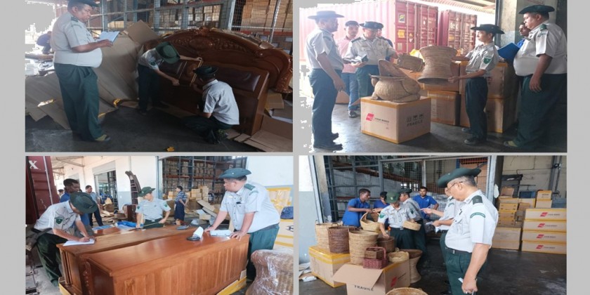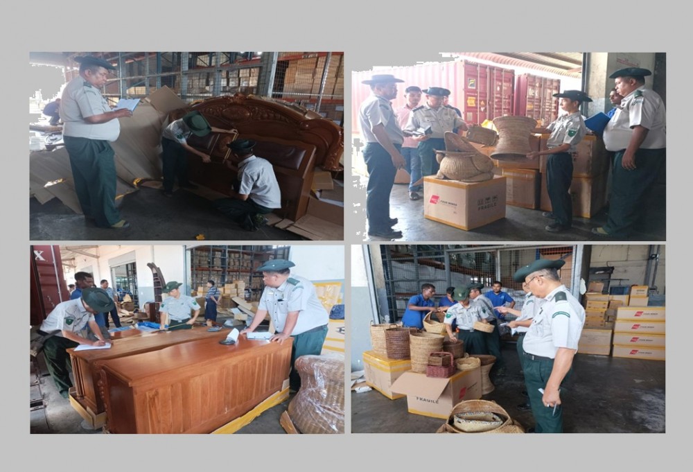 On the 23rd, 24th, 25th and 26th of March, illegal rattan and teak products, jade, mini projects, foodstuffs, gas cartridge butane and timber worth over 280 million Kyats were confiscated at the Asia World Container Checkpoint and at the Oriental inspection gate as well as in Muse Township and at the Mayan chaung Permanent Checkpoint as well as in Taungoo and Thayawaddy districts. Investigation is underway and legal actions have been taken in line with the laws.