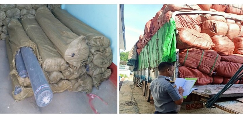 Similarly, construction materials that did not declare in the Import Declaration (ID) from a Cheng Long truck heading from Myawady to Bago Township and fabric and consumer goods from a Mitsubishi Fuso 12-wheel truck were confiscated near Phayagyi Tollgate.