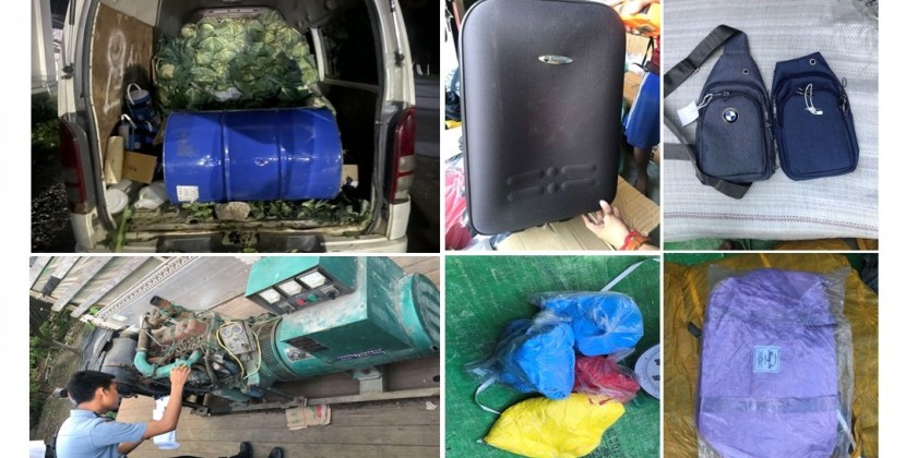 A combined on-duty team captured 170 litres of restricted chemicals – suspected Toluene liquid from a Toyota HiAce car and industrial materials and consumer goods that were not declared in the Import Declaration (ID) from a Nissan Diesel car at the 16th-Mile Kyaukchaw Checkpoint of Mandalay Region An inspection team seized 86 jerry cans of edible oil and instant noodles and snacks without official documents from a Sunlong bus heading from Myawady to Yangon at the Phayagyi Tollgate.