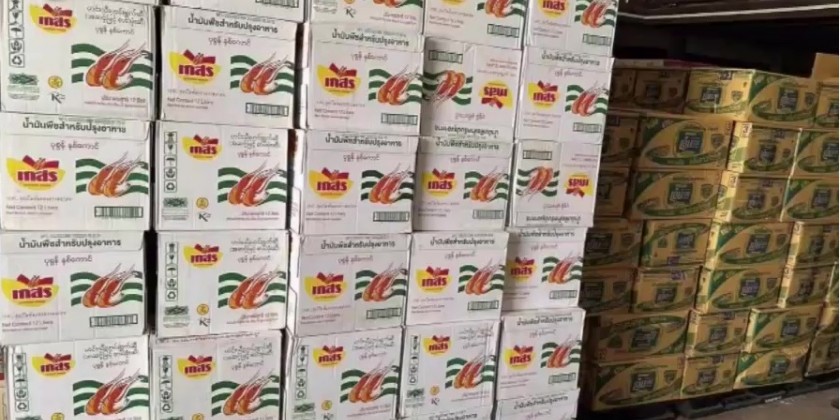 On 23 February, a total of 8.076 tonnes of illegal sawed teak at the 16th-Mile Kyaukchaw checkpoint from two vehicles heading to Lashio from Mandalay, 200 cartons of liquid dishwashing detergent and 1200 litres of palm oil (two shrimps) from a Hino truck near Hninzi street in No 1 ward of Myawady township, 110 car tyres from a vehicle heading to Yangon from Myawady at the Mayanchaung permanent checkpoint in Mon State, foodstuffs and consumer goods from a vehicle heading to Yangon from Kyaikto were confiscated.