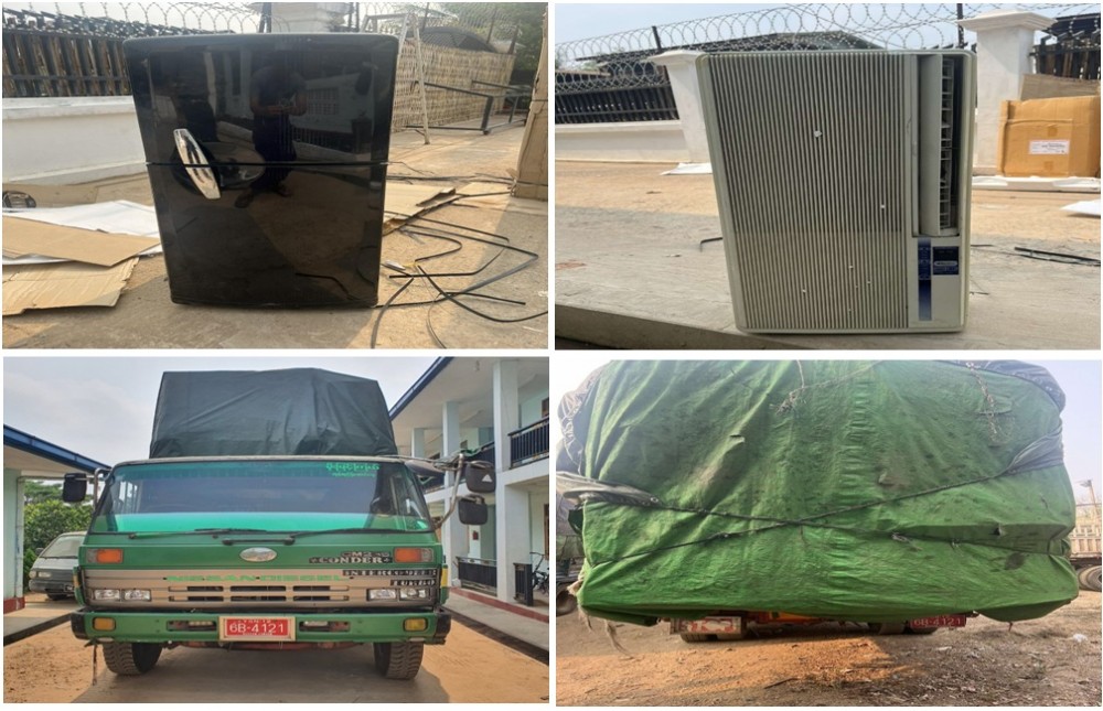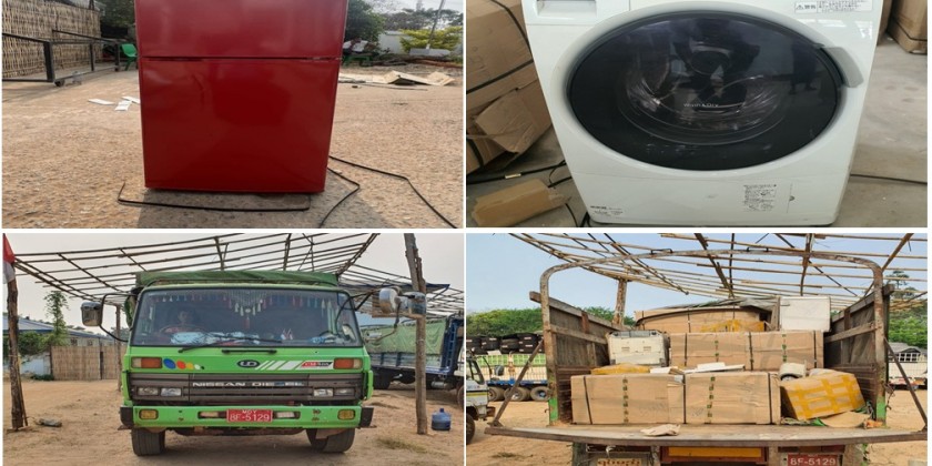 On 20 April, 18 kinds of goods (including 337 110-V used refrigerators) from five vehicles were captured near the Nyaungkhashay X-Ray checkpoint. Four kinds of foodstuffs and consumer goods and agricultural material from a vehicle were seized by an inspection team led by a police officer from Phayagyi Police Station. a total of 115.770 tonnes of illegal timbers was seized in Myitkyina township.